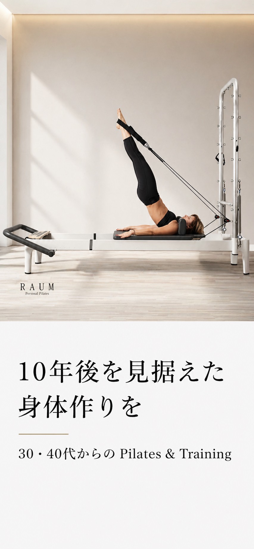 RAUMではマシンピラティスを中心に身体の筋バランスを整えることをメインに行なっていきますので、トレーニングが原因で脚が太くなるということはまずありません。