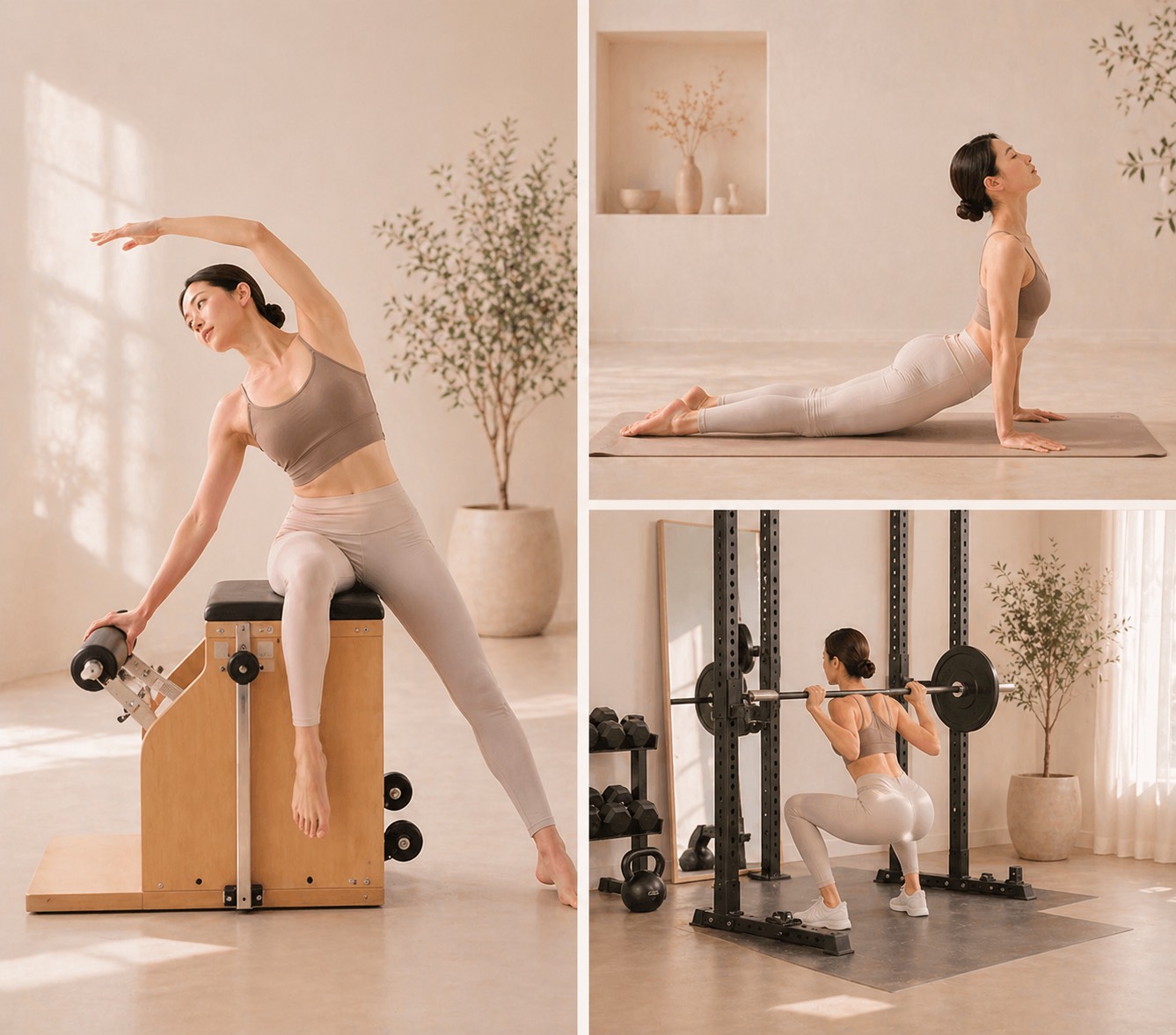 しかし一般的には「パーソナルトレーニング=重い重さを担いだりする筋トレ」というイメージ、「ピラティス・ヨガ=体幹、インナーマッスル」というイメージがあるかと思います。