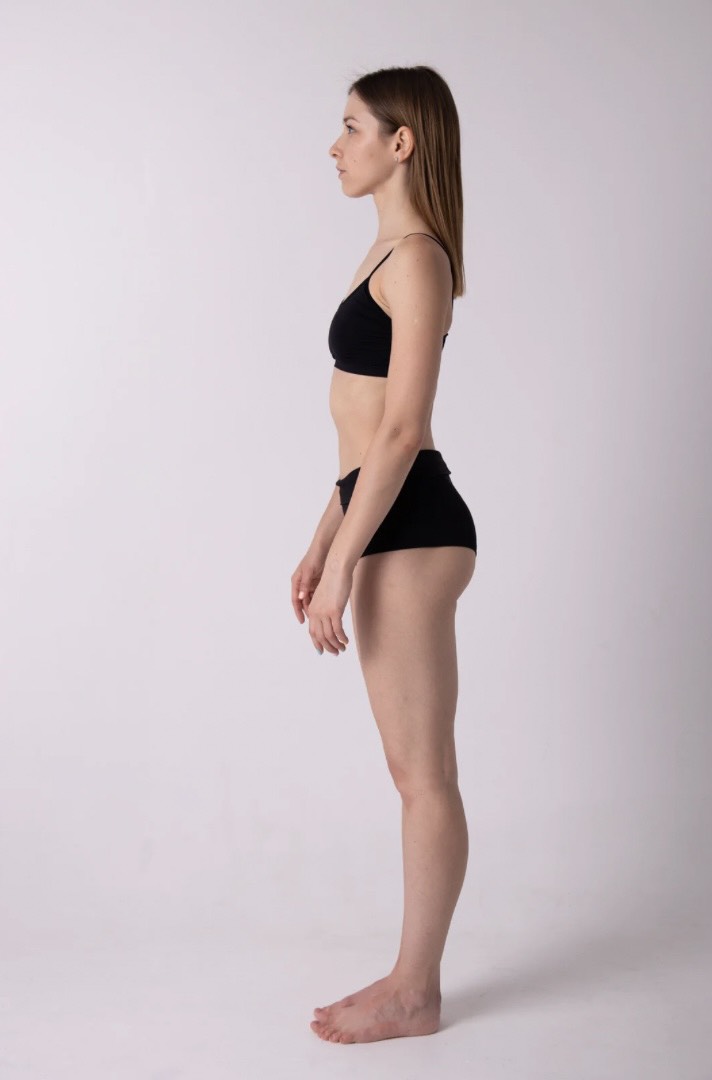 こちらの写真を見てどちらが ”良い姿勢” に思う人は多いでしょうか?お尻がプリッとしている左の方が良いスタイルと答える方が多いかもしれません。良い姿勢に定義がないので正解というものはないですが、左は骨盤が過前傾、腰椎過前湾(反り腰)となっており、お尻は上がって見えますが、反り腰からくる腰痛に悩まされているかもしれません。